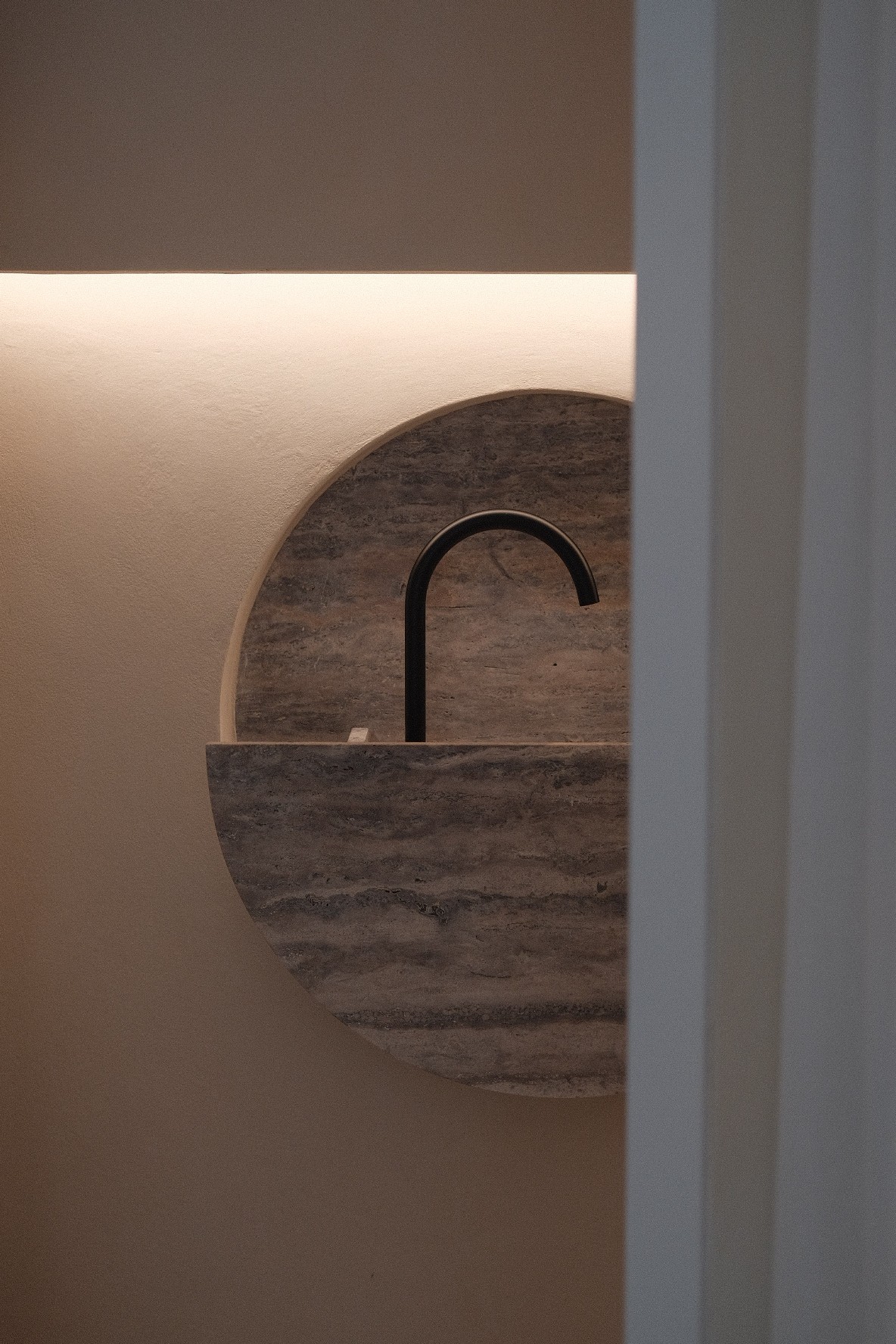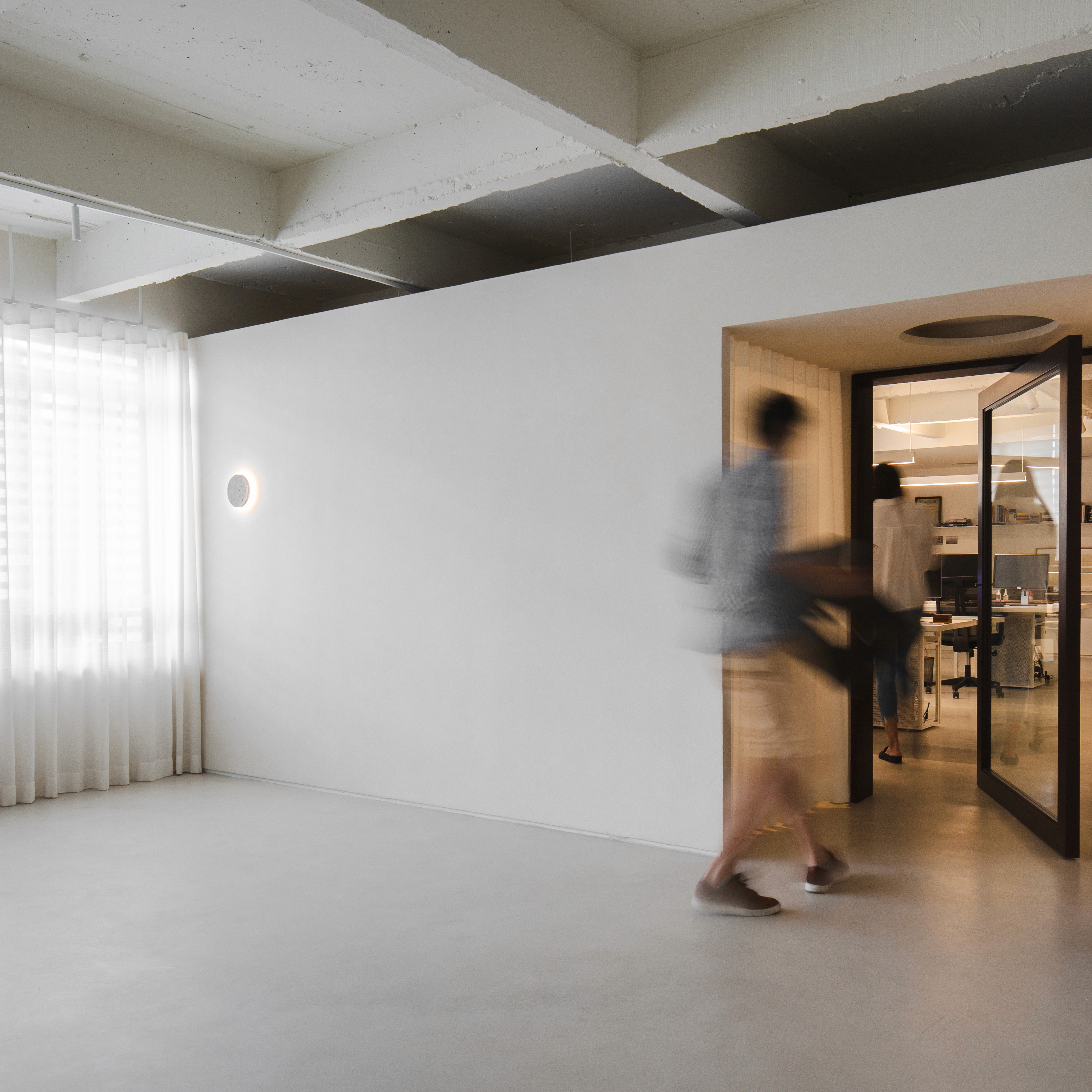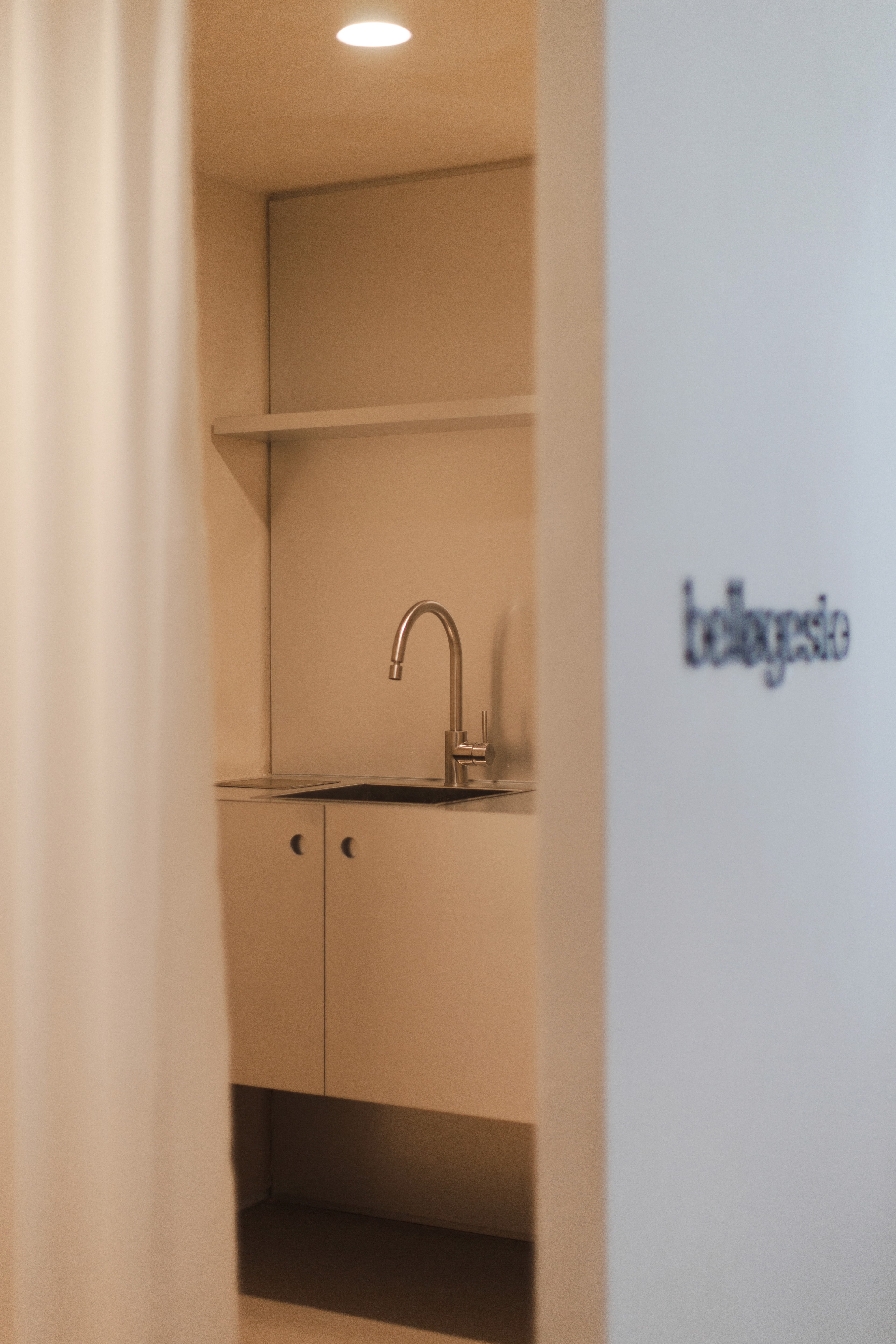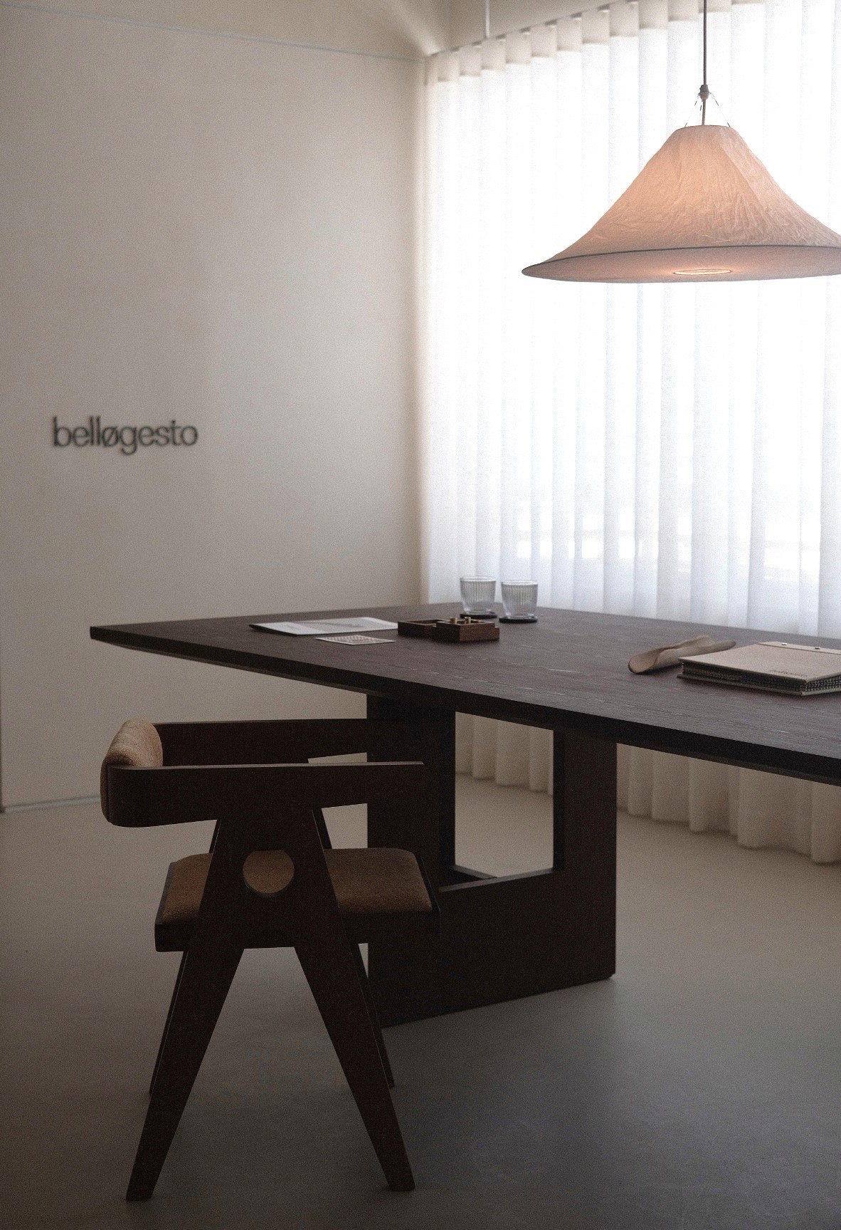 O showroom da Belløgesto foi concebido a partir de um princípio essencial: valorizar o vazio como cenário para os móveis. Nesse contexto, a espacialidade e a precisão de cada encontro importam a arquitetura atua como suporte silencioso, permitindo que as peças assumam protagonismo. A abertura do forro, com laje e vigas aparentes, ampliou a percepção de altura e trouxe mais respiro ao ambiente. O programa foi organizado de forma estratégica: banheiro e copa em uma extremidade, e o estoque na outra, liberando o centro como área expositiva contínua e flexível. O resultado é um espaço luminoso, com luz natural filtrada pelo brise do edifício. As diferentes incidências ao longo do dia revelam nuances, texturas e reflexos, destacando a materialidade de cada mobiliário e reforçando a atmosfera calma e precisa do showroom.