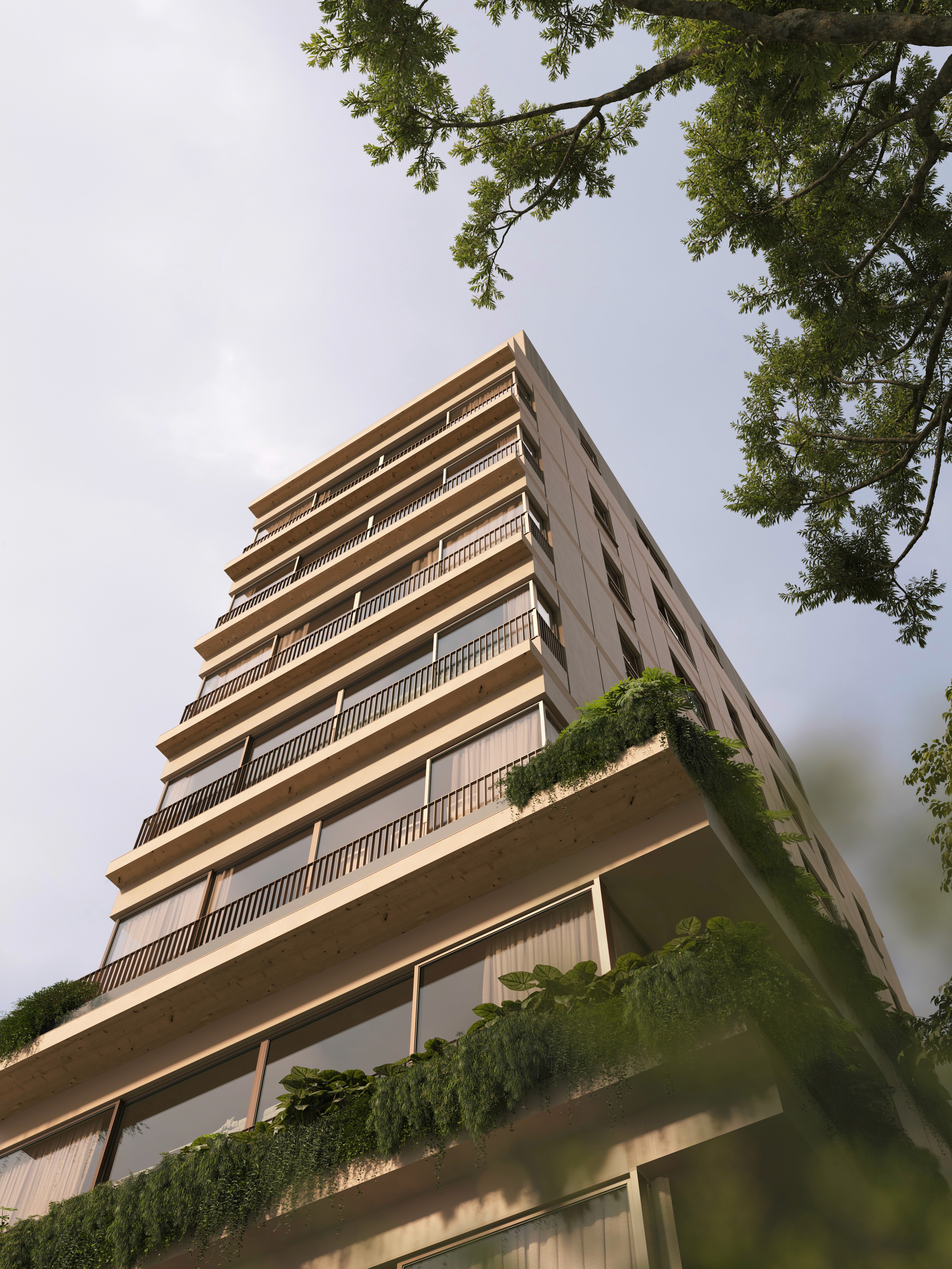 O IBÁ faz parte de uma transformação emergente na construção civil brasileira. Embora o país seja um grande produtor de madeira de reflorestamento, o uso da madeira engenheirada ainda está em fase inicial de industrialização. O edifício adota uma estrutura híbrida, combinando um núcleo central em concreto com lajes em CLT e pilares em glulam. Essa abordagem garante eficiência estrutural ao mesmo tempo que valoriza a presença visível da madeira. Além de reduzir emissões de CO₂, o uso da madeira acelera significativamente o cronograma da obra — um diferencial importante em cidades com alta demanda habitacional e escassez de mão de obra.