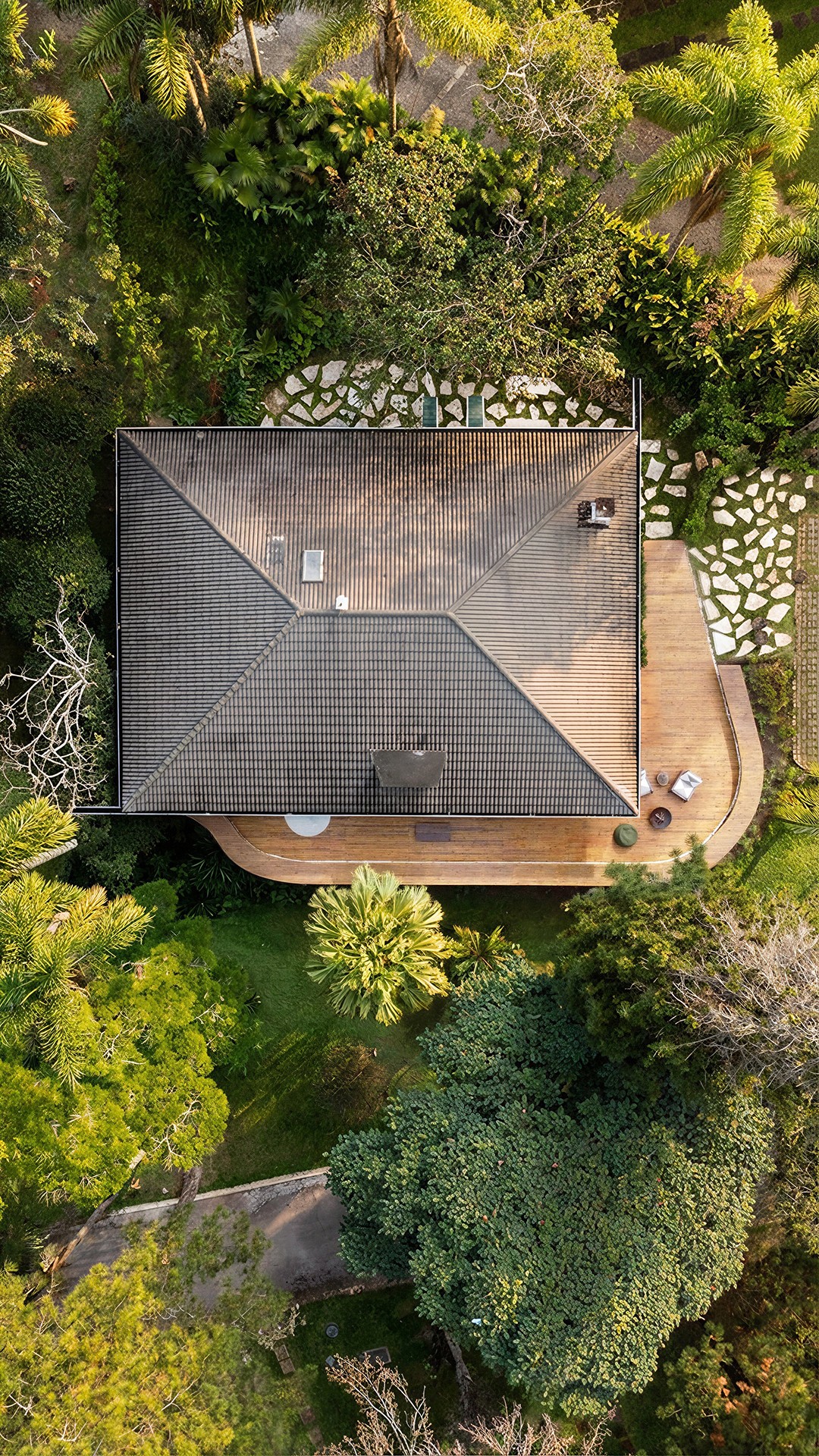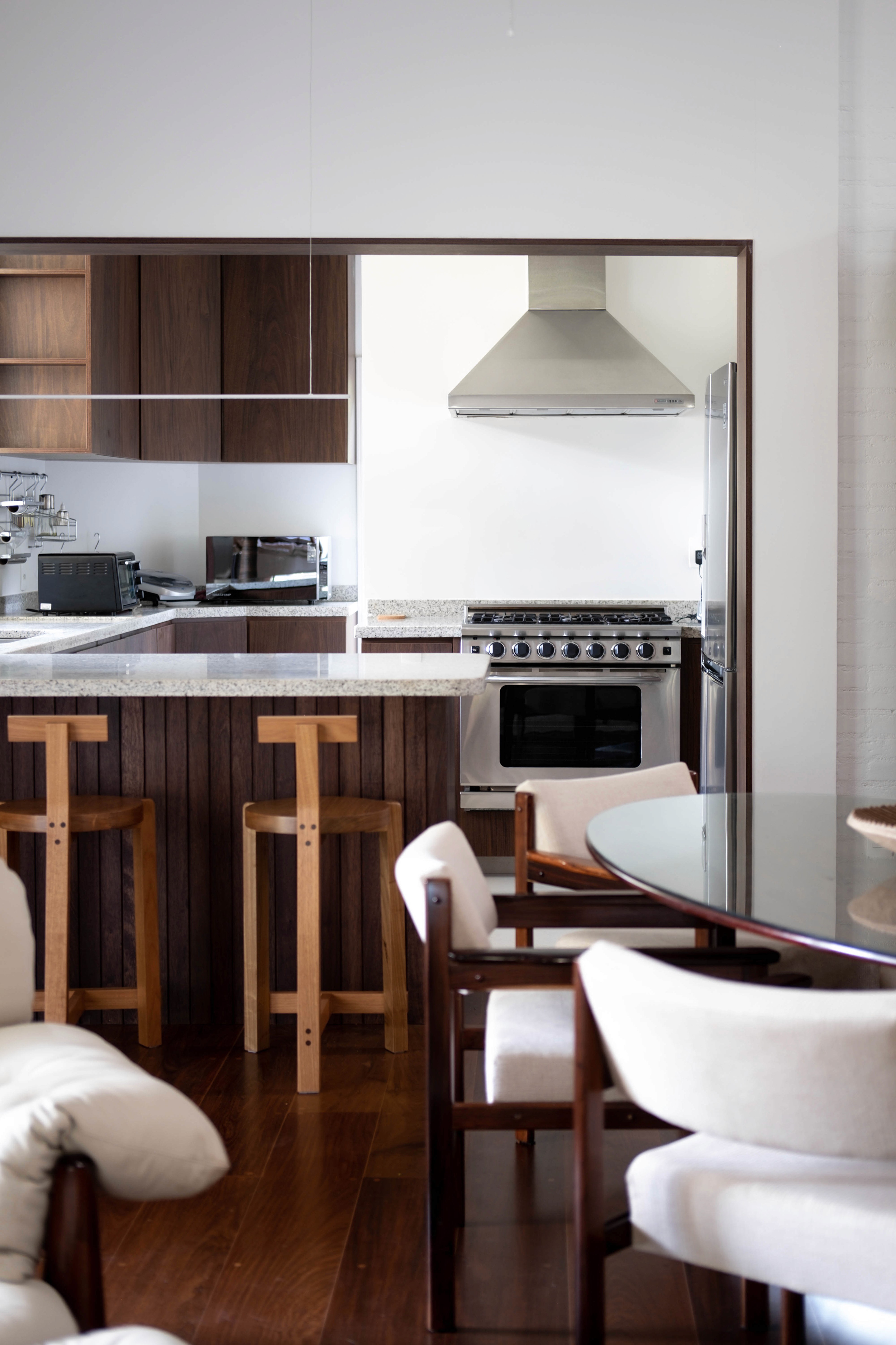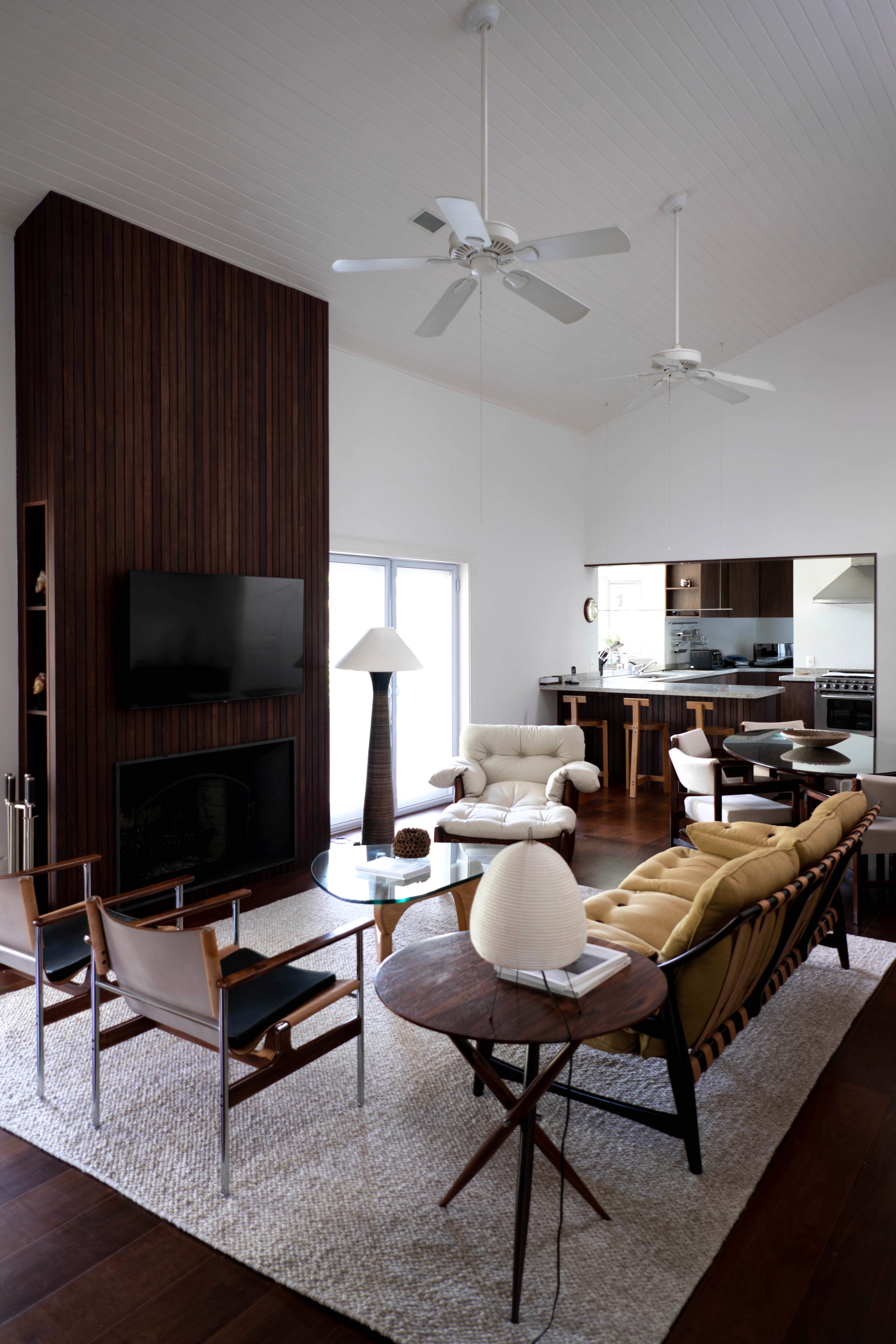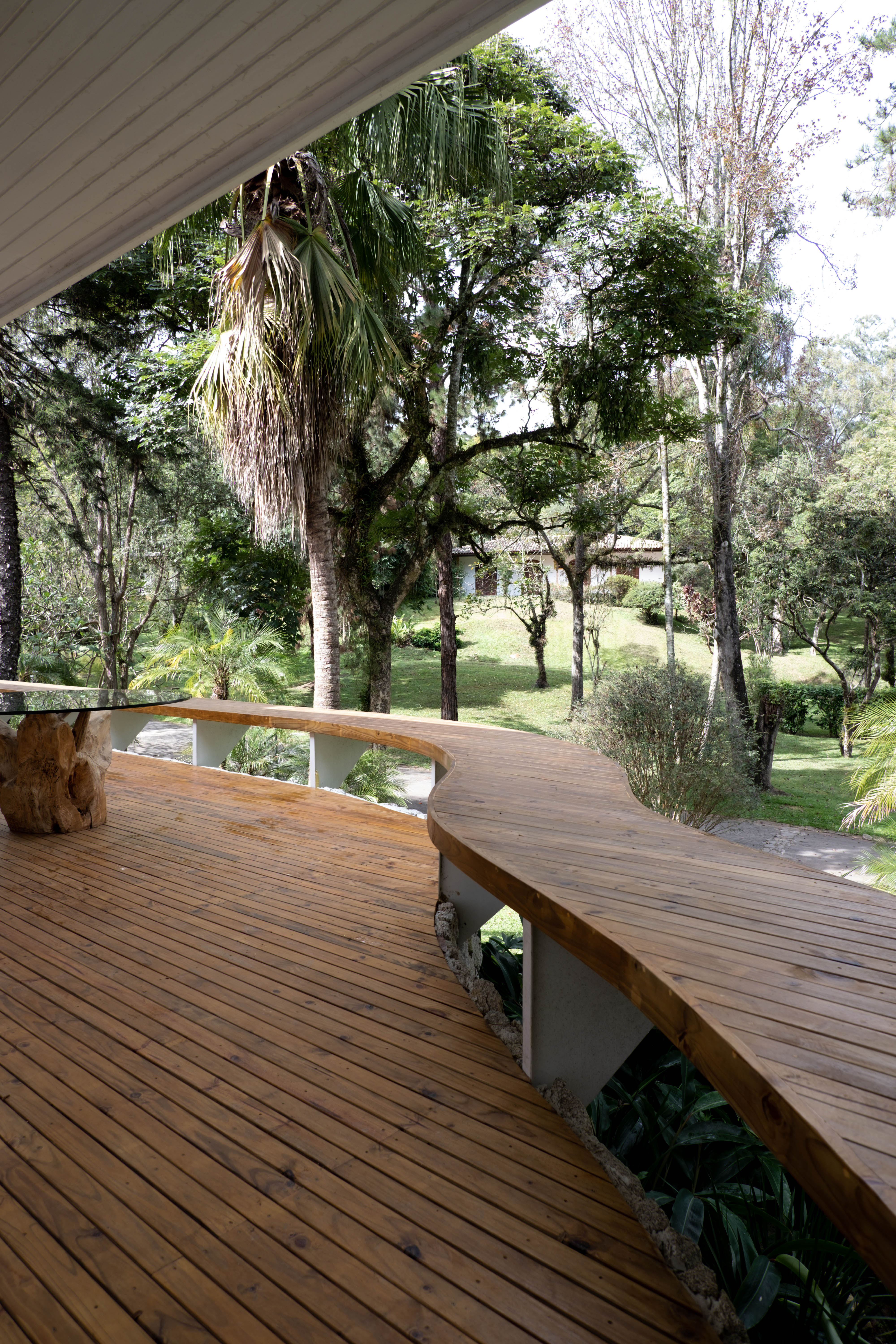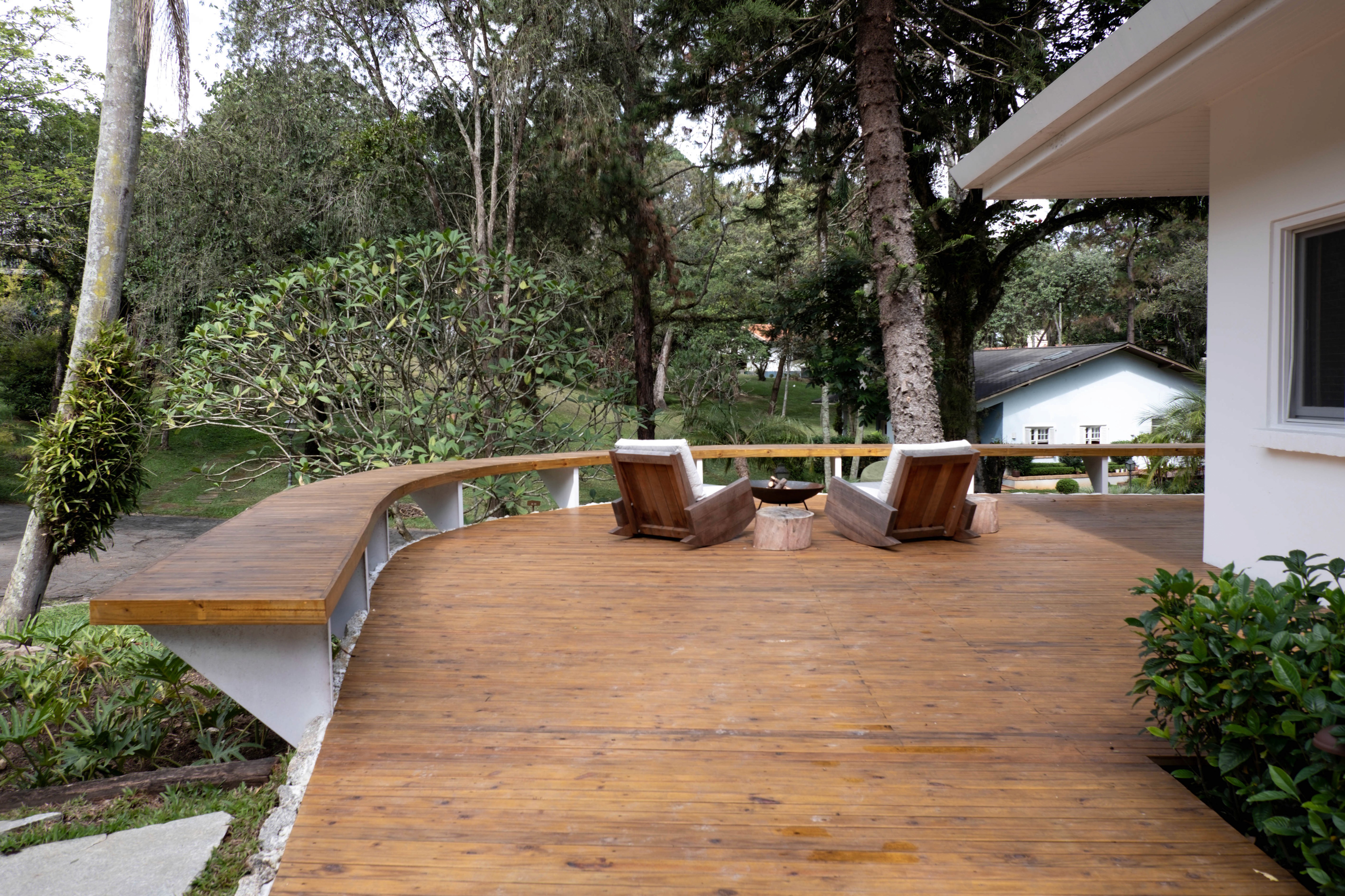 Localizada no Clube de Campo de São Paulo, a Residência RL passou por uma reforma pensada para atender às novas necessidades do morador. A principal intervenção externa foi o deck curvo, que faz referência às linhas orgânicas dos campos de golfe. No interior, o projeto buscou neutralizar os elementos pré-existentes e valorizar as peças de design, resgatando a atmosfera e a elegância do estilo mid-century.