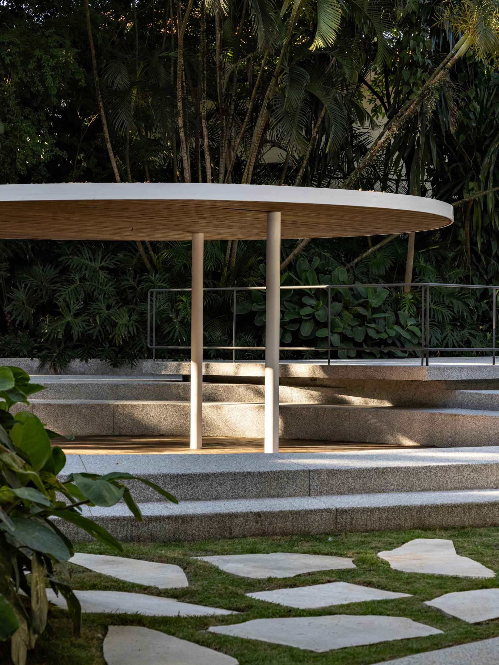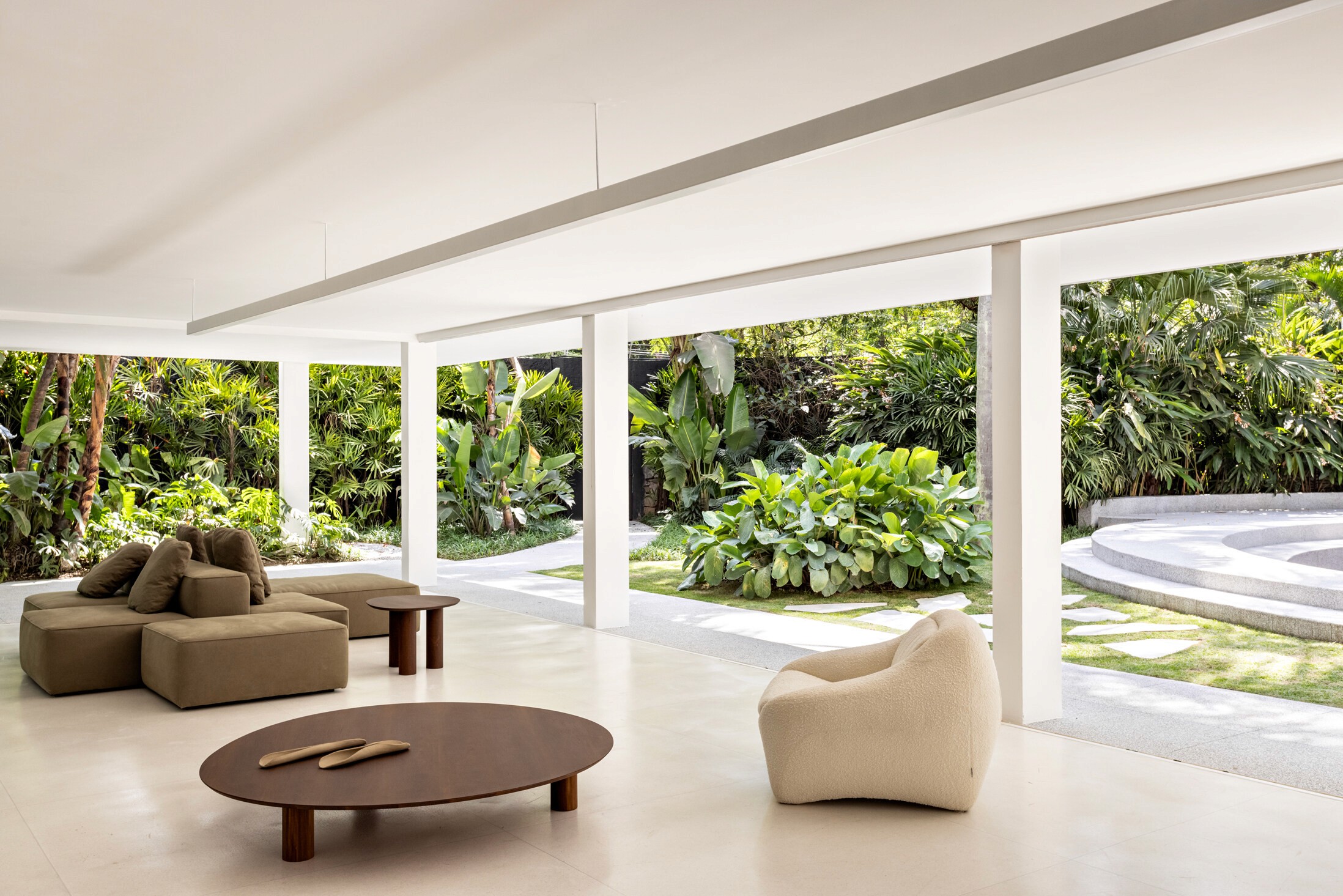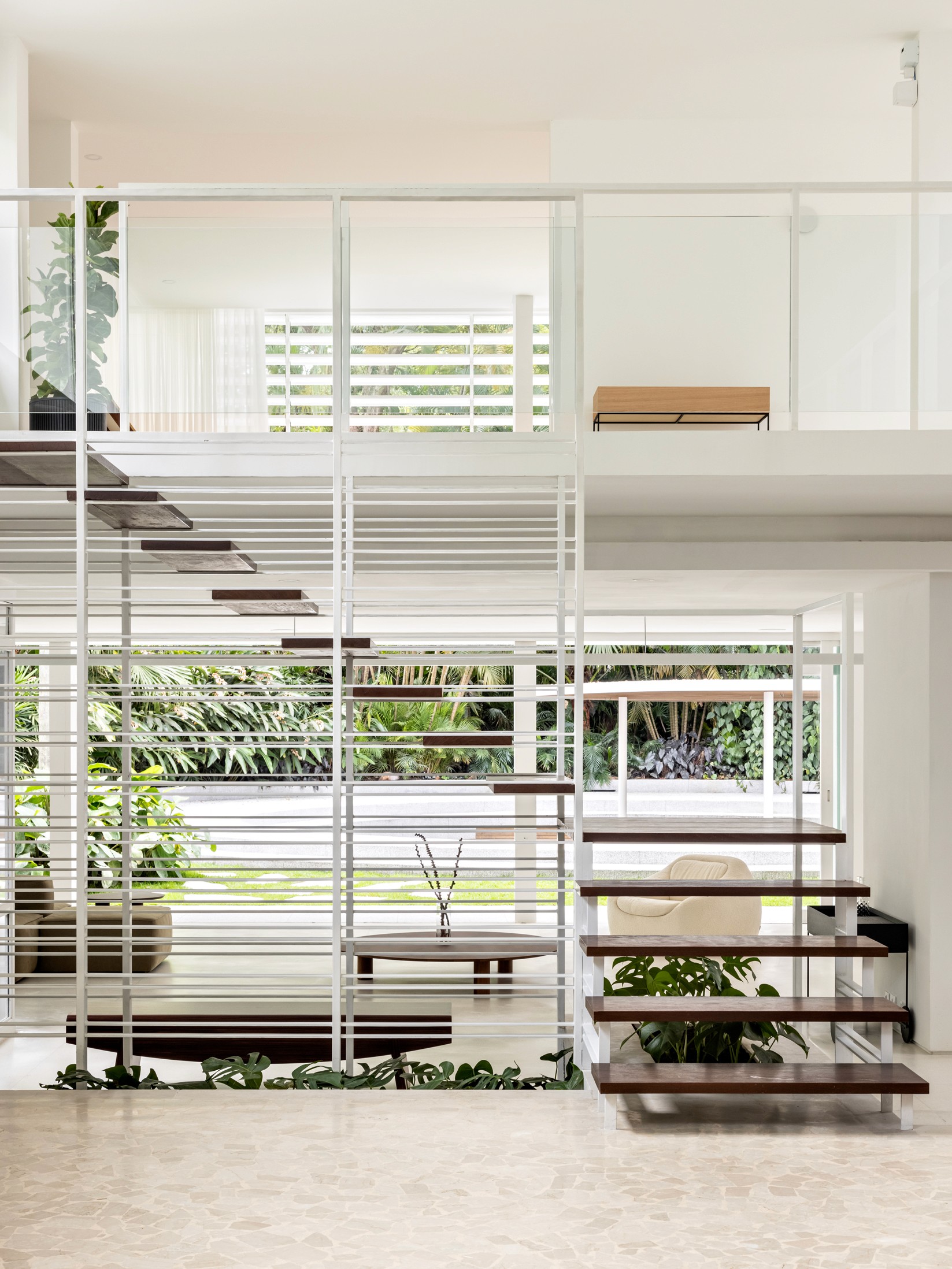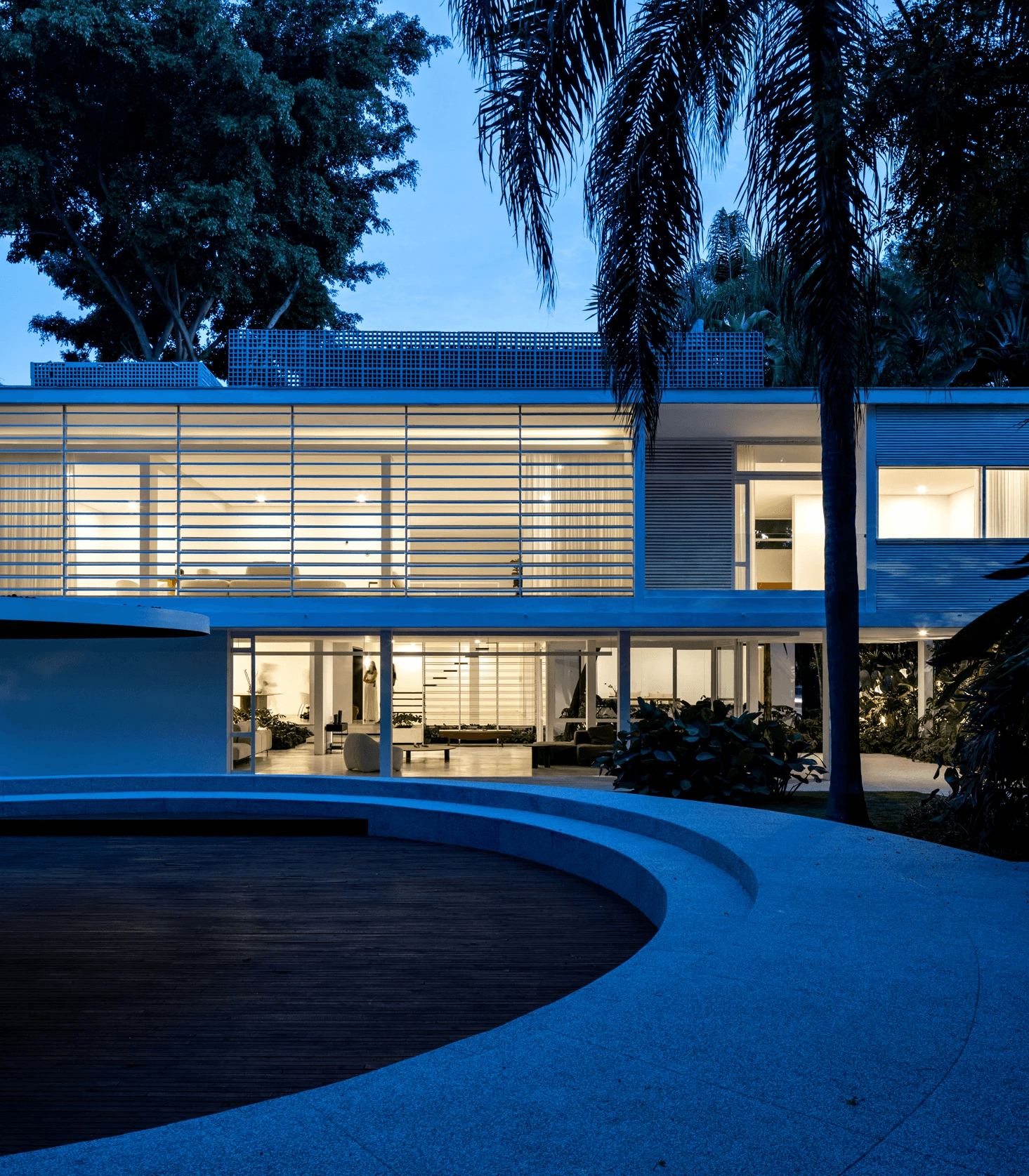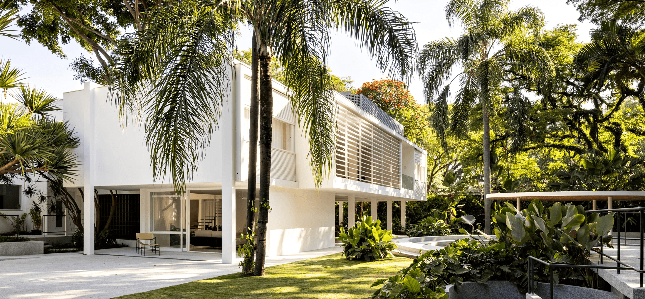 Localizada em São Paulo, a Residência Ferraz de Andrade segue princípios da arquitetura moderna europeia, adaptados aos experimentos brasileiros até os anos 1960. Projetada em 1962 para o arquiteto Nino Ferraz, tem como diretriz valorizar o jardim em diferentes pontos de vista. A casa apresenta elementos marcantes do modernismo, como pilotis, grandes esquadrias e fachada de geometria simples voltada para a rua. Com programa tradicional para a época, utiliza materiais comuns como ladrilhos hidráulicos, piso de caquinho, assoalho de madeira e esquadrias metálicas. O desnível do terreno é destacado por uma escada central que organiza o hall e a sala. No restauro do Estúdio bg, foram analisadas reformas e documentos para resgatar elementos originais como a escada, o piso do hall e os brises metálicos, preservando a linguagem moderna do projeto.